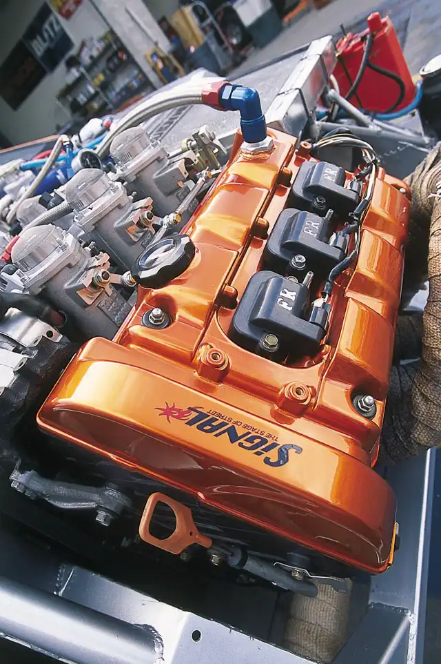 Что касается непосредственно двигателя — поршни, распредвалы (Toda) и клапанные пружины были доработаны. Сейчас с трудом можно определить, что двигатель, изначально созданный для автомобиля компоновки mid-ship (с центральным расположением двигателя), уместился в отсеке, предназначенном для мотора переднеприводного Civic в кузове хетч. Затруднительной была разработка эксклюзивного корпуса дросселя; она потребовала многосторонней переработки электропроводки, чтобы в итоге все смогло работать. Использование платформы NSX породило еще одно противоречие: как эта машина может выступать в классе 4-цилиндровых моторов? На данный момент Signal уже оштрафовали за превышение допустимого веса, но краткосрочными задачами являются разработка новых приводных валов и увеличение рабочего объема блока до 3,5 литров на компонентах Toda, используемых в спортивных двигателях серии GT300, и достижение показателя в 400 л.с. на колесах. Двигатель, установленный в автомобиле сейчас, взят с Honda NSX Type R 3,0L.