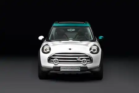 Концепт кроссовера представляет в длину чуть больше четырёх метров, в ширину – 1,83 м и в высоту – 1,60 м. Колёсная база при этом составляет 2, 60 м. При сравнении с обычной «минькой», новинка, где дорожный просвет составляет 28 см, кажется просто гигантом, который стоит на мощных 18-дюймовых колёсных дисках с шинами размерности 245/45. Несмотря на свою «гигантность», концепт всё же получился довольно компактным и виной тому своеобразный дизайн кузова, который во многих деталях схож с обычный «купером». Мощный фронт был представлен типичной решёткой кулера с противотуманками и выпуклыми фарами. Боковая линия красуется расширенными арками и интересным концептом крыши, которая слегка смахивает на большую зелёную кепку, а хвостовая часть – открывающейся «наотмашь» дверью, вытянутыми тормозными сигналами и двойным выхлопом. Интересно, что крыша концепта представлена в виде своеобразной «открывашки» с брезентовым верхом, которая при открытии собирается в гармошку в задней части.