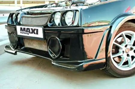 После установки мотора и внешность машины не осталась без внимания – родной белый цвет плотно закрасили демонически черным. Со сногсшибательными кузовными работами и огромным выхлопом выведенным под порог травоядный Тавриолет превратился в дьявола… ну, ладно, в дьяволенка, но все равно очень быстрого и опасного. Передний бампер взят от тюнингового комплекта, предназначенного для восьмерки, стандартные фары и решетка заменены так же на тюнинговую деталь, рассчитанную под 4 фары от ВАЗ 2106. Есть мнение, что светят они лучше, чем стандартная «Таврическая» оптика. Хвостовая часть кузова так же изрядно переделана. Бампер взят от обвеса «Миллер Пилот» опять же предназначенного для ВАЗ 2108. Оригинальные фонари сделаны на самом деле из 6 плафонов освещения салона УАЗика. Массивные пороги и огромные расширители арок придающие автомобилю еще более грозный вид сделаны из стали.