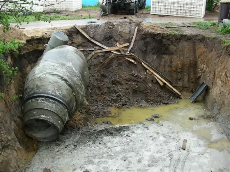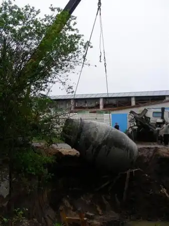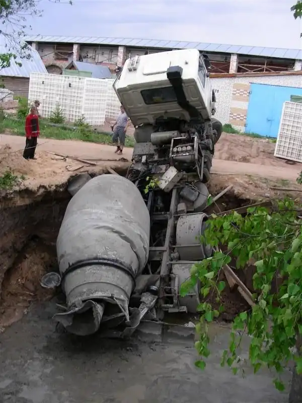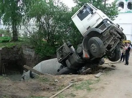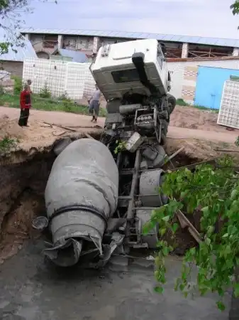 Во время бетонирования, обвалилась земля с края.