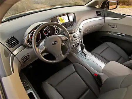 Основополагающий элемент в интерьере - раскинувшаяся в трех направлениях центральная консоль. Она широкими жестами показывает направо и налево, а затем плавно уходит вниз, заполняя пространство между передними креслами. Традиционно для Subaru центральная часть отделана серебристым пластиком, который имитирует металл. Имитирует, надо сказать, неплохо - в Tribeca сидишь, как в космическом аппарате.
