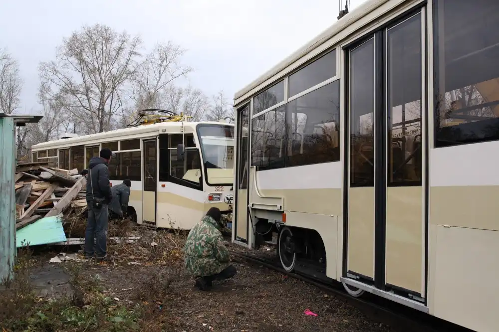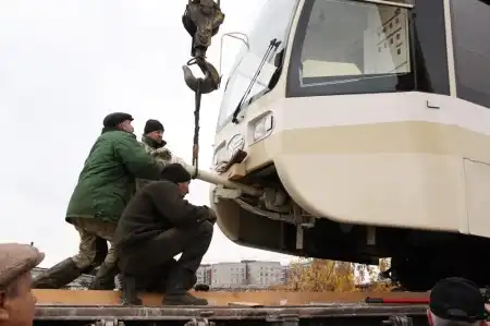 Вчера на Томске-2 разгружали два новых трамвая. Представляю вам детальный фоторепортаж :)