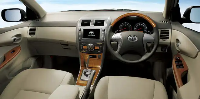 Дизайнеры освежили внешний вид радиаторной решетки, передних фар и задних комбинированных фонарей в седане Toyota Corolla Axio. Кроме этого, автомобиль укомплектовали сиденьями с подогревом, а кожаную оплетку рулевого колеса разнообразили вставками из натурального дерева.
