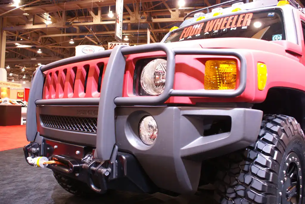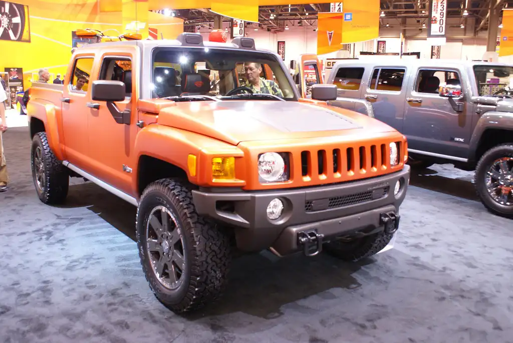 Оранжевый концепт Weekend Warrior – более продвинутый проект, где V8 объемом 5,3 литра доработан путем установки головок блоков от мотора LS2 (стоящего на Corvette). Тормоза заменены на более мощные, а амортизаторы – на оснащенные выносными резервуарами детали американской марки Rod Hall. Впрочем, аксессуаров от Hummer хватает и тут, включая двадцатидюймовые колеса.