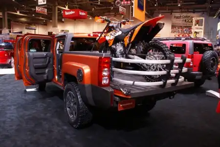 Hummer – отличный донор, и многие компании это успешно доказывают. К примеру, на этой SEMA были замечены сразу два «снегохода» на базе знаменитого американского внедорожника. Но концерн GM хочет не поразить публику, а продать побольше фирменных аксессуаров. Поэтому все три проекта на базе Hummer, представленные концерном, были вовсе не настолько экстремальными, насколько хотелось бы. Зато были под завязку набиты всевозможными дополнительно оплачиваемыми аксессуарами вроде мультимедиа-систем в подголовниках и креативных ковриков.
