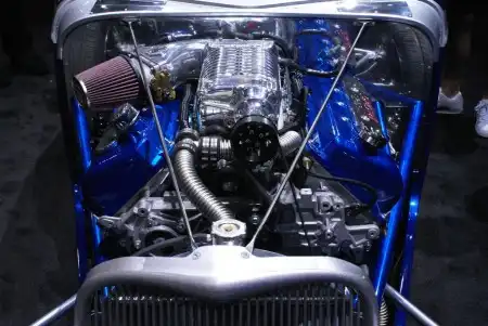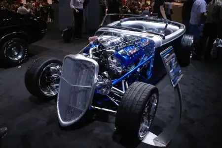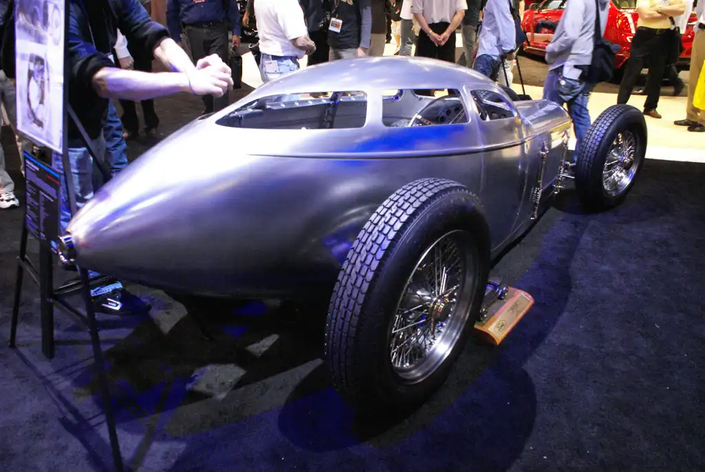 Напротив располагался кит-кар, который малыми партиями выпускает ателье Factory Five. У него облик типичного хот-рода, но на трубчатом каркасе установлен фордовский мотор объемом 4,6 литра, дополненный механическим нагнетателем. Старомодно выглядящая конструкция позволяет не только порадовать любителей старины, но и добиться впечатляющей энерговооруженности. Кстати, этот автомобиль – вовсе не эксклюзивный выставочный проект, в Factory Five его можно заказать за вполне приемлемые деньги.