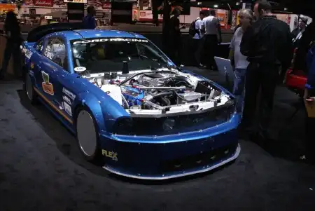 Первым в глаза бросался Mustang, созданный для заездов на соляном озере в Бонневилле и подготовленный гоночной командой Hajek Motorsport. Ее тысячесильный мотор работал на этаноле, что не помешало машине преодолеть барьер в 250 миль в час. За основу была взята полугоночная версия Mustang FR500C, которую активно нашпиговали серьезными компонентами из ассортимента марки Ford Racing. Сейчас эта машина считается самым быстрым «мустангом», собранным на базе серийной машины. Утверждение не очень однозначное, но раз американцам хочется…