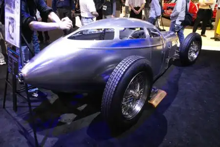 А вот с серебристым автомобилем так поступить не получится. «Золотая подводная лодка» - построенная в единственном экземпляре копия гоночного автомобиля начала двадцатого века, ставшего знаковым для американского автоспорта (уже в 1917 году эта конструкция имела алюминиевый кузов и двигатель с алюминиевым блоком цилиндров). Создавшая «субмарину» компания Webb Automotive Art снабдила машину современным мотором Ford Racing Zetec ZX3. Он используется в не самых раскрученных гонках и развивает 175 л.с., но ведь ретро-проект и не будет никогда гоняться всерьез.