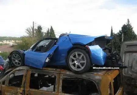 Пока еще не очень много Tesla Roadster на дорогах мира, этот инцидент привлек к себе много внимания. Директор по продажам во Франции полностью электрического автомобиля Tesla решил прокатить нового покупателя автомобиля на большой скорости. Как сообщает полиция, автомобиль входил в поворот на скорости в 160 кмч при мокрой дороге и сильном тумане. Последствия такого вождения вы видите далее. Кстати, даже вследствие такого сильного удара, и водитель, и пассажир отделались практически легкими ушибами, не считая сломанной руки и нескольких ребер, чего не скажешь об автомобиле.