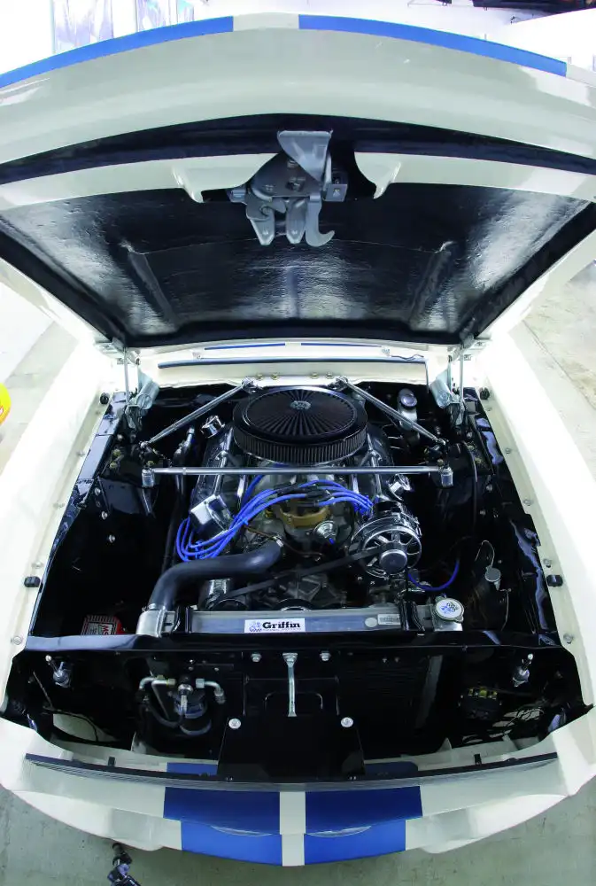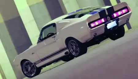 В Batistinha Garage & Speed Shop уже стояла одна «Элеонор» на реставрации – точная копия из фильма. И там решили, что делать то же самое будет слишком банально и скучно. Бразильские мастера предложил заказчику новаторский вариант – белоснежную GT500E, выкрашенную именно в тот легендарный лакированный цвет Wimbledon с парочкой полосок через капот, крышу и багажник, как у самых первых Shelby. Полоски окрасили в блестящий синий для придания элегантности. Оптика осталась оригинальной, но получила поддержку в виде ксеноновых фар дальнего света, дополнительных «малюток» по бокам от основных и парочку в бампере. Под капотом уже стояла очень грозная вещица объемом 428 кубических дюйма (около 7 литров), но бразильские ребята решили приберечь его для другого проекта, а заказчика уговорили прикупить 392 блок из каталога Ford Racing. Мотор объемом 6,4 л и мощностью 430 л.с. замечательно сменил оригинальный и вдобавок укомплектовался карбюратором Road Remon. И это было только началом, так как в машине поменяли более 400 деталей - оригинальными остались только колеса и задние сиденья. Авто снабдили амортизаторами Aldan и защитой картера, чтоб не погнуть об бразильские кочки новые агрегаты. Чтобы новый хозяин «Элеонор» смог переключать передачи, как Николас Кэйдж в Gone in 60 Second, была заказана надежная 5-скоростная коробка Tremec Extra Duty – почти такая же, как у дрэгстеров лиги NHRA, которые могут похвастаться мощностью 1200 л.с. Опять же, чтобы остальные комплектующие не отставали, на GT500 поставили тормоза PBR размерностью 13" спереди и 12" сзади. Колесные диски R17, как у большинства классических «пони-каров», обтянутые в резину 235/40 спереди и 265/40 сзади. Тюнинг этого Mustang соответствует доводкам гоночных экземпляров, а динамика лишь подтверждает. До 100 км/ч машина разгоняется немного больше, чем за 5 секунд, а максималка - где-то в районе 240 км/ч. Из оригинальной выхлопной трубы исходил легендарный «грохот», но по просьбе заказчика его сделали «звучным», как принято у тюнеров в наше время.