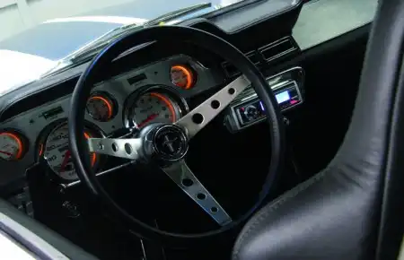 Интерьер «Эли» сделали, естественно, люксовым: кондиционер, кожаные ковшеобразные сидения от Rallye, приборы Auto Meter на оригинальном торпедо. В компании Bass Audio мастер Мауро Кастро встроил звуковую систему Db Drive с коаксиальным комплектом. Ее 5" 1/4 динамики были установлены практически в ногах водителя, а твитеры функционируют как центральный канал и находятся по центру на панели. Сзади стоит тайник, в котором припрятали сабвуфер Diamond Audio и усилок Quantum с 4 каналами по 100 WRMS мощности каждый. И главное, что после всех этих новшеств машина не потеряла своей оригинальности и смотрится так же великолепно, как в далекие шестидесятые.