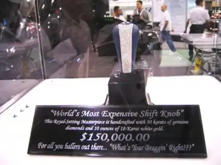 Но если модель фирмы Lotus - эксклюзив и существует в единственном экземпляре, то Bentley создала «драгоценную» насадку на рычаг коробки передач, которую вполне можно будет приобрести. Эта насадка выполнена из кожи, инкрустированной бриллиантами на 30 карат, обрамленными 10 унциями белого золота. Цена на эту роскошную деталь чуть меньше, чем на и так недешевый автомобиль Bentley: $150 000. Тут уж приходится выбирать: либо два Bentley, либо один, но с драгоценной ручкой. Кому что ближе...
