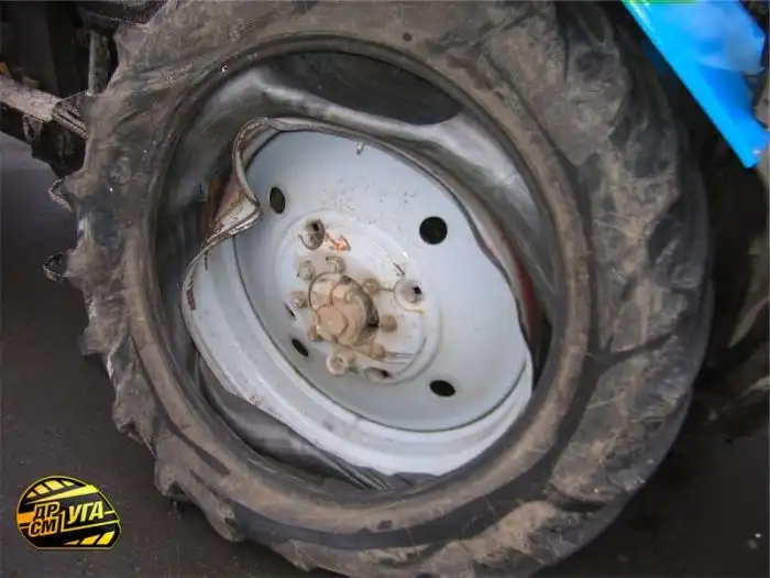 В результате этой аварии у Chevrolet полностью изувечен передок, но зато трактор отделался покореженным колесным диском и разбортированным колесом. Радует, что никто в ДТП не пострадал.