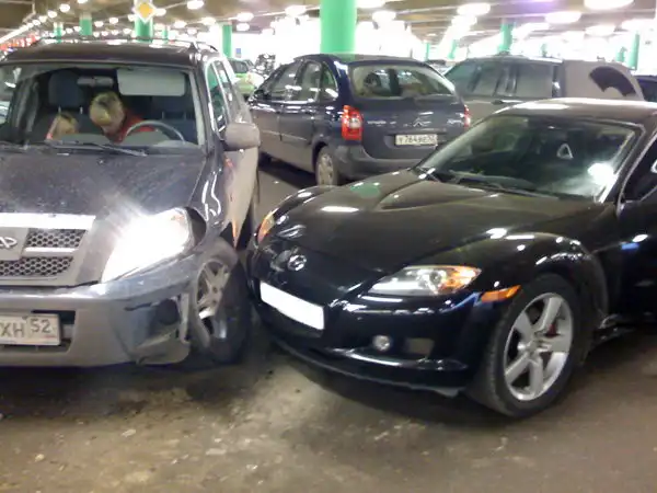 А вот у детища китайского автопрома, под гордым названием Chery Tiggo... пипец. Вывернуло колесо, фара, крыло, и хз что еще там... чувствую много серьезных скрытых повреждений, т.к. сейчас, ВНИМАНИЕ, при столкновении на парковке на скорости 5 км/ч у Чери лопнули все 4!!! литых диска.