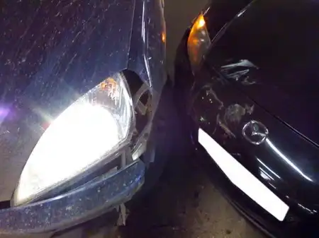 У меня из повреждений - бампер (треснул, поцарапан), капот (вмятина, поцарапан), фара немножко + противотуманка отвалилась (стекло целое).