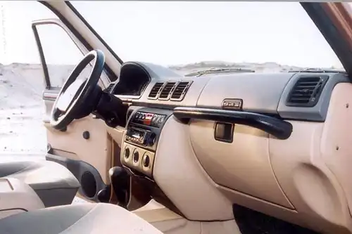 электростеклоподъемники дверей и электрорегулировки наружных зеркал, регулировку передних ремней безопасности по высоте, специальный бокс-холодильник, размещенный между пассажирскими сиденьями, и раскладной столик-подлокотник на третьем ряду сидений. На часть машин (добавочный индекс -060) устанавливают панель приборов нового типа со скругленными обводами, которая выглядит уже вполне современно. На консоли расположен набор кнопок управления второстепенными системами, круглые ручки управления вентиляцией и место под магнитолу. Предусмотрены два вещевых ящика и поручень для пассажира.