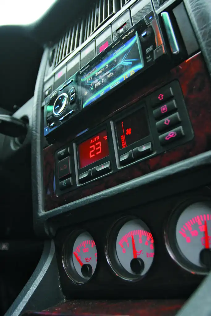 дополнительные приборы Defi: давление наддува, давление топлива и температура выхлопных газов.