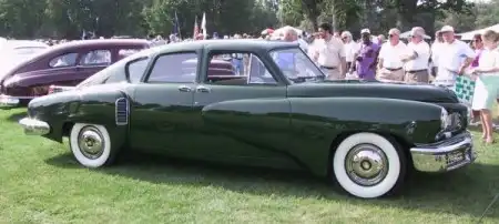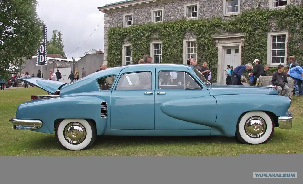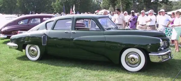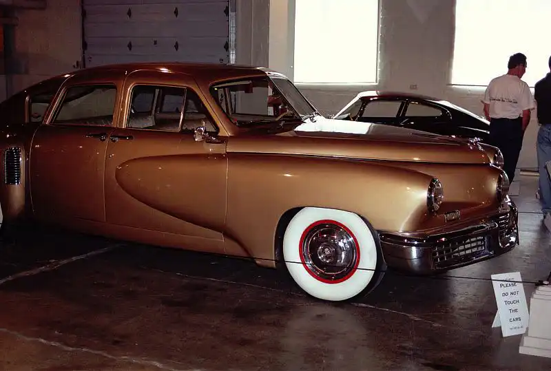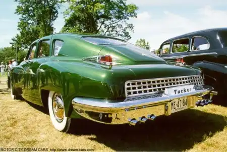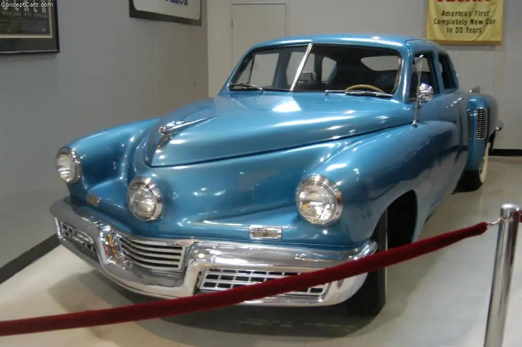 Только что победоносно закончилась Вторая мировая война. Будущее казалось безоблачным, обещало прогресс и всеобщее процветание. Наряду с пластиком, шариковыми ручками и персональными вертолетами публике пообещали «Автомобиль будущего». И он не замедлил появиться в образе прототипа Tucker Torpedo. В 1945 году в США был отменен действовавший в годы войны запрет на производство легковых автомобилей. Не имея в своих активах новых проектов, и «Большая Тройка», и другие компании в спешном порядке выбросили на изголодавшийся рынок хоть и слегка обновленные, но порядком устаревшие довоенные модели. И вот на фоне этого унылого однообразия подобно вспышке сверхновой звезды появляется прототип Такера! Машина произвела ошеломляющее впечатление. Длинный, низкий, «зализанный» кузов с заостренным носом, покатой задней частью в стиле фастбек и крыльями мотоциклетного типа, поворачивавшимися вместе с передними колесами. Синхронно с колесами поворачивалась и дополнительная центральная фара в носовой части капота. Утопленные в крылья основные фары выдвигались и включались автоматически по команде никому тогда еще не известных фотоэлементов.