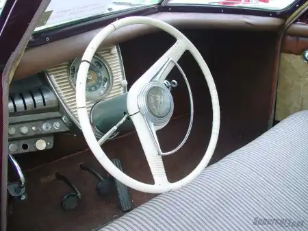 Место водителя располагалось на продольной оси автомобиля с пассажирскими сиденьями по бокам. Салон был защищен «непробиваемым» силовым каркасом. Добавьте к этому плоский оппозитный двигатель от вертолета Bell в задней части машины, независимую подвеску, дисковые тормоза и множество прочих «наворотов», и станет понятно, почему Tucker Torpedo выглядел пришельцем из далекого будущего. Справедливости ради надо отметить, что некоторые заложенные в машину конструкторские решения оказались крайне проблематичными, более того – неработоспособными. Но выяснилось это позже, в ходе подготовки к серийному производству. А тогда, в 1946-м, появление столь радикальной конструкции было расценено ведущими автопроизводителями как подведенная под устои их благополучия мина замедленного действия. Ведь от всего, что встречалось на дорогах, «Торпеда» отличалась как электрическая лампа от свечки.