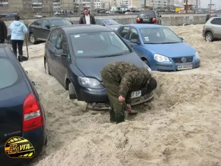 Вода намыла много песка и поэтому с утра мало кто смог выехать.