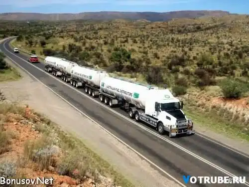 В большинстве стран Европы длина автопоездов в среднем составляет 18,5 м, и только недавно в Швеции и Финляндии принято решение разрешить эксплуатацию с максимальной длиной 25,25 м. В Австралии двойной автопоезд весом 80 т достигает около 35 м в длину, тройной – 115 т, а его длина – 53–56 м!