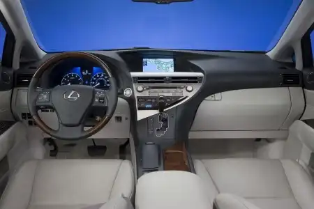 Автомобиль стал просторнее как снаружи, так и внутри. По сравнению с RX 350 предыдущего поколения, Lexus вырос на 15 мм, стал на 30 мм длиннее и на 40 мм шире. При этом ширина салона увеличилась сразу на 52 мм. Но главное даже не в увеличении размеров, а в общей смене стилистической направленности дизайна интерьера. На смену громоздким симметричным формам предыдущего поколения RX пришла оригинальная утонченная асимметричная компоновка со скошенной центральной консолью и инновационным джойстиком навигационной системы. Двухсекционная приборная панель в черно-синих тонах стала на порядок функциональнее. Революционный информационный дисплей, впервые выполненный на основе органических светодиодов, замечательно читается даже с пассажирского сиденья. Пустячок, конечно же, но приятно! Равно как и система автоматического отвода и возврата кресел, при выключении двигателя самостоятельно перемещающая рулевое колесо в самое высокое положение и отводящая водительское сиденье на 50 мм назад. Устроившись с ее помощью за рулем, нажимаем кнопку «старт», и настройки кресла и рулевого колеса автоматически возвращаются в исходное положение. Поехали!