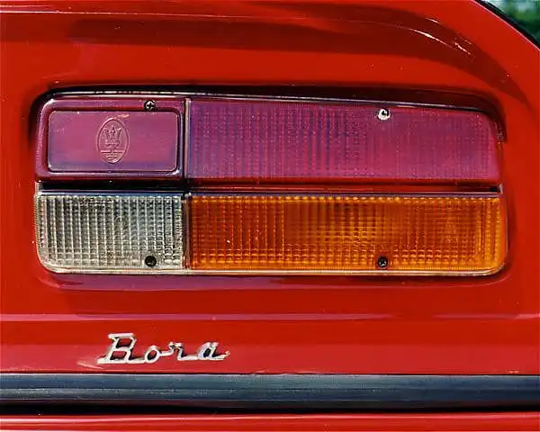Джорджетто Джуджаро, создав в 1969 году компанию «ItalDesign», стал личным портным для Bora. Через много лет маэстро вспоминал, как в 1966 году, еще работая над «Ghia», он сделал сразу несколько эскизов. Плоды вдохновения в скором времени материализовались в De Tomaso Mangusta и, чуть позже, в Maserati Bora. Стиль двухместного купе Воra стал классикой 70-х. Взгляните на «рубленые» линии его кузова. В передней части радиатор прикрывала решетка. Ее зев посередине разделен внушительной «переносицей» и украшен фирменным трезубцем Maserati. Спрятанные в подкапотном пространстве фары дублируются парой мощных противотуманных фонарей (только на ранних моделях). Это выглядит уместным и помогает избежать дисгармонии, возникающей при использовании основного света. Дверь не могла остаться заурядной и получила глубокий скос вперед, повторяя контур сиденья. На мощной средней стойке расположился люк горловины бензобака с миниатюрным замочком. Сразу за стойкой необычно длинное «треугольное» стекло, которое простиралось до кормы. Стремление линий сойтись в одну точку на «затылке» безжалостно пресечено «рубленой» задней частью. Запомните этот «отрезанный хвост». Потом его можно было увидеть на Alfa Romeo Alfasud, Lancia Delta. Даже Volkswagen Golf несет этот фирменный элемент мастера. Все, что демонстрирует Bora сзади, это лаконичные фонари, скромная хромированная полосочка бампера и четыре торчащие напоказ выхлопные трубы.