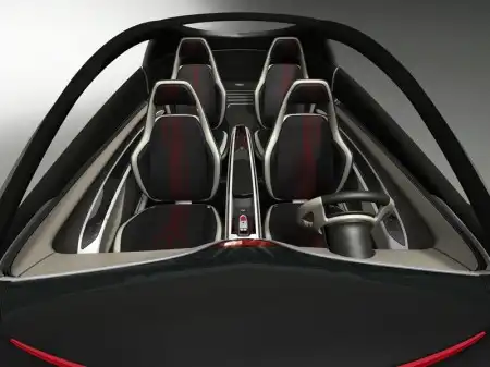 Автомобиль со стремительным и мускулистым силуэтом выглядит вполне гармонично. Широкие колесные арки контрастируют с впадинами на длинных боковых дверях, узкие фары и задние фонари, смотрящиеся неотъемлемой частью кузова, лишний раз акцентируют внимание яркой внешности концепта.
