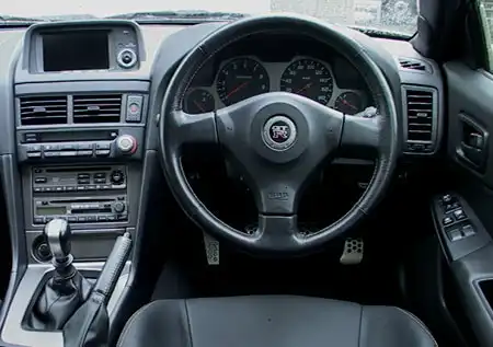 Как и на приборной панели модификации V-Spec II, тахометр имеет вспомогательную шкалу с более мелкой разбивкой для диапазона менее 3000 об./мин. Кресла ручной работы, обтянутые натуральной кожей, имеют внутренний подогрев сидений. На уровне плеч спинки кресел имеют шероховатые вставки, препятствующие соскальзыванию туловища при крене машины в поворотах. Подголовники - общие для всех автомобилей серии GT-R, с элементами вышивки.