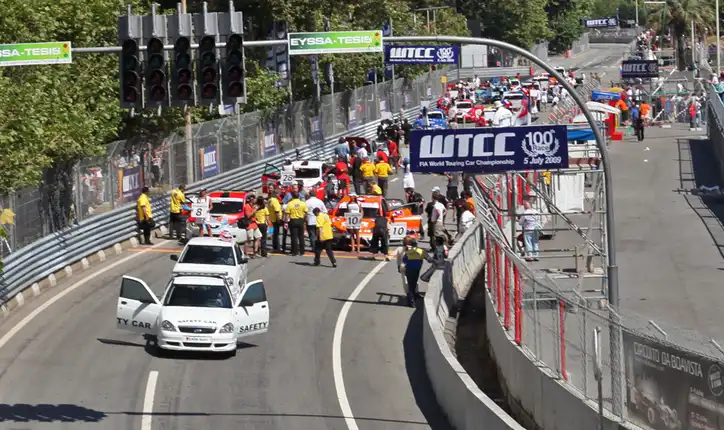 В первой гонке было две аварии. Сначала, прямо на старте столкнулись Lada ван Лагена и BMW Серхио Эрнандеса (его срочно с подозрением на перелом ноги эвакуировали в госпиталь прямо на вертолёте). Несколько позже во время атаки на торможении Chevrolet Алена Меню въехал в BMW Аугусто Фарфуша, после чего первого развернуло поперёк трассы. Chevrolet сильно пострадал, а гонку пришлось начинать заново, но уже без четверых участников.