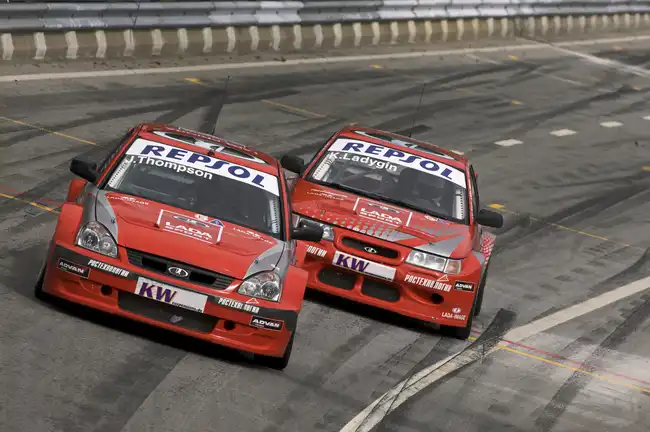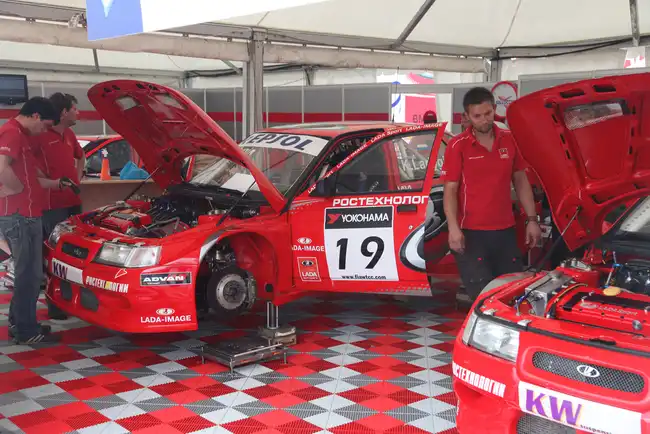Российские машины оба заезда провели позади пелетона. Основной задачей Томпсона было довести дебютировавшую Priora до финиша. Заезды он закончил на 18-й и 15-й позициях соответственно, но результаты товарищей по команде на «десятках» ещё плачевнее. Ван Лаген выбыл из гонки после старта в первом заезде, а Кирилл Ладыгин во второй гонке на последнем круге после контактной борьбы с BMW, коснувшись правым переднем колесом бетонного отбойника, повредил подвеску и сошёл с дистанции.