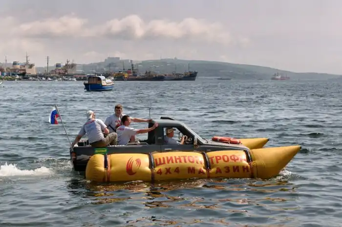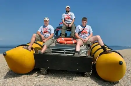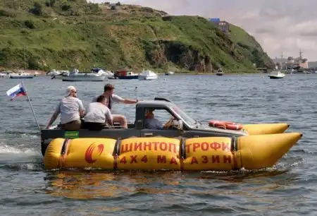 Ребятки заморочились и сделали из машины лодку. Забавно получилось)