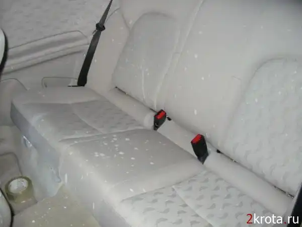 Баллончик с краской закатился под сиденье. Когда девушка начала двигать сиденье, баллончик взорвался...