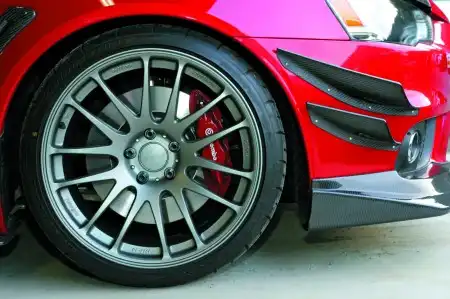 Ну зачем? Даже колеса подобрали такие, чтобы подчеркнуть разницу тормозов между Evo и обычным "Лансером". Им что, заплатила компания Prodrive? Зачем нам модель GC-014i, когда под боком замечательные диски Enkei или BBS? Ну, да бог с ней с маркой, теперь они 19-дюймовые! Батюшки мои, они никак тормоза собрались еще увеличивать! Ох, пропадет вся гениальная задумка...