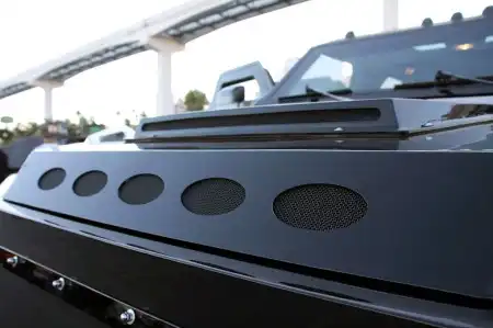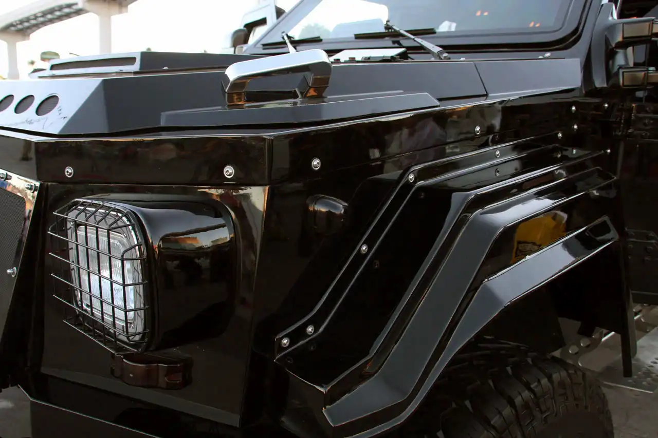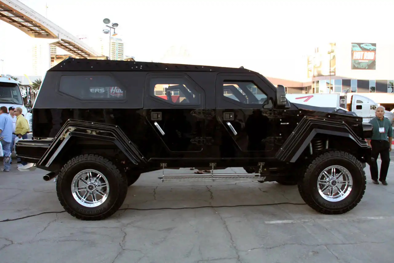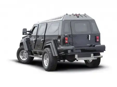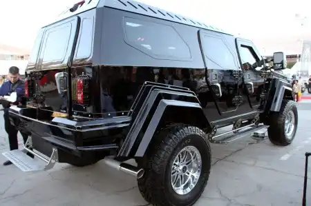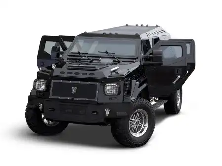 Автомонстр Knight XV, весом в 4,5 т, создан на базе военного автомобиля Gurkha, который, в свою очередь, является «ближайшим родственником» Ford F-350 Super Duty. Он бронирован так, будто бы готовится к бомбовой атаке. Его двигатель V10 объемом 6.8 литров выдает мощность в 400 л.с. и крутящий момент 678 Нм. Диаметр его колес вместе с шинами составляет 40 дюймов (около 1 метра), ведь одни только колесные диски, изготовленные по авиационной технологии, диаметром 20 дюймов.