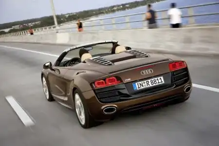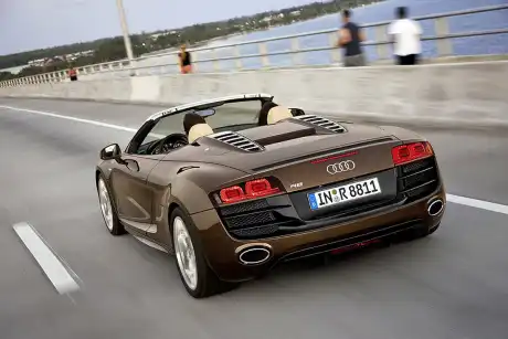 Из-за отсутствия официальной информации мы не можем сообщить тебе сведения о габаритах кабриолета, однако уже сейчас точно известно, что единственным силовым агрегатом для этого автомобиля будет 5,2-литровый V10 от Lamborghini, мощность и крутящий момент которого составят 525 л.с. и 530 Нм соответственно. Вместе с крышей Audi R8 Spyder избавился от фирменных "лезвий" по бокам, зато за пассажирскими креслами теперь появились характерные выпуклости с воздухозаборниками.