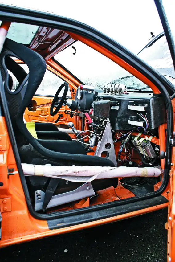 В Старом Свете наблюдается интересная тенденция: большинство дрифт-каров на базе европейских моделей весьма серьезно перекроены, в отличие от "японцев", которых тюнинг в большинстве случаев не касается столь глубоко. Свап мотора, изменение развесовки, хирургия кузова – явление для "фордов" и BMW столь же обыденное, как LSD на какой-нибудь "Сильвии". Причины тому можно искать разные: может, "японцы" изначально более приспособлены для езды боком, а может, любители предпочитают не вмешиваться в них так глубоко, как в "родные" немецкие авто – Sierra Николя Айера только продолжает эту закономерность. Ведь среди стоковых деталей его автомобиля теперь можно отметить разве что фары да некоторые кузовные панели. Более чем двухкратное увеличение мощности двигателя, полный "стриптиз" салона, установка каркаса безопасности, ревизия тормозной системы, замена подвески с изменением точек ее крепления – процесс перерождения псевдораллийного автомобиля в профессиональный инструмент дрифтинга проведен по всем пунктам.