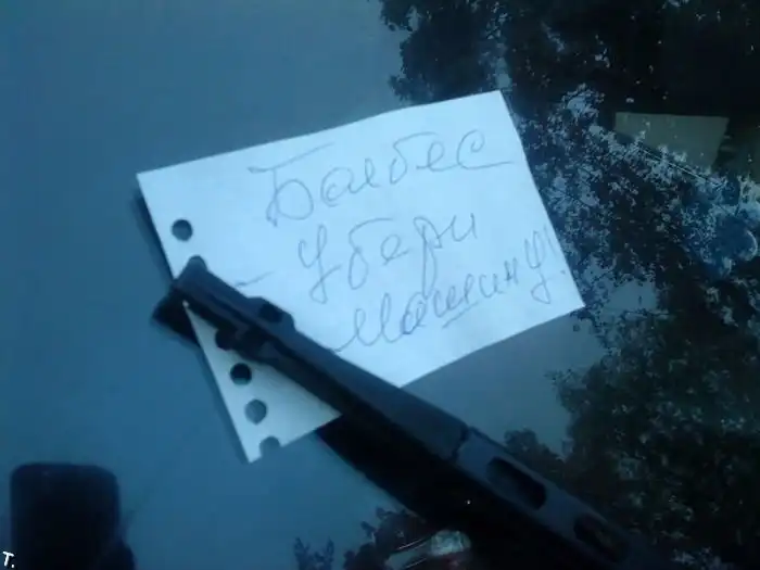 Недовольные люди пишут записки и, судя по всему, даже прокололи колесо.