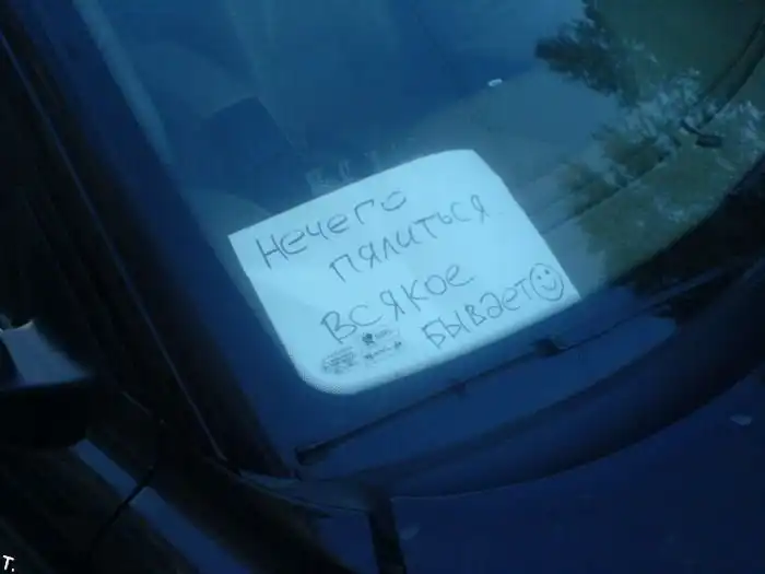 Водитель не хотел, чтобы люди обращали внимания на его битый автомобиль, и ради этого повесил объявление.