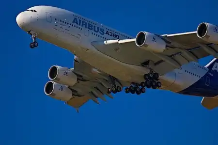 5) Среди больших лайнеров Airbus А380 самый экономичный — 3 литра топлива на одного пассажира на 100 километров пути. Имеет четыре двигателя. Также у лайнера предусмотрена грузовая модификация A380F с возможностью перевозить груз до 150 тонн на расстояние до 10 400 км.