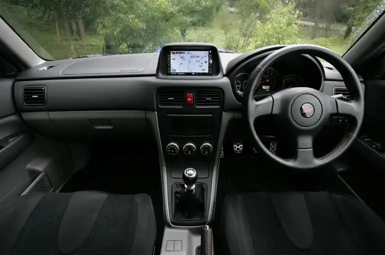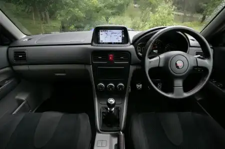 Ничего, зато внутри все сделано по законам жанра. Что я имею в виду? Да то, что если бы меня поместили в салон машины, образно говоря, вслепую, то я бы ни за что не подумала, что сижу в автомобиле типа SUV. И это потому, что все в салоне сделано, как в обычном спортивном автомобиле - и никаких признаков SUV! Рулевое колесо, рукоятка рычага управления трансмиссией, ручной тормоз, - все это отделано натуральной кожей. Преобладает черный цвет, на фоне которого особенно впечатляет красно-вишневый логотип «STI». Стоит только все это увидеть, как сразу чувствуешь, что внутри этой машины скрыта немалая энергия, которая может многое. Между тем я усаживаюсь поудобнее в своем ковшеобразном кресле, подголовник которого выполнен заодно со спинкой. Сидения покрыты шершавым материалом, чтобы тело не скользило. Как только я нашла нужную позу, у меня сразу возникло чувство, что мое тело вплоть до головы оказалось в жестких тисках боковых суппортов. Ладно, осматриваю расположенную передо мной приборную панель. Посередине красуется большой тахометр, справа стоит циферблат спидометра, который имеет разбивку вплоть до 240 км/час. Все окрашено в черный цвет, хотя средняя часть передней панели обработана таким образом, что ее черная поверхность отличается матовым оттенком, то есть, не блестит. По всему видно, что дизайнеры старались всячески вызвать у водителя и пассажиров субъективное чувство качества, и им, нужно признаться, это удалось.