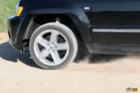 Вопреки традиции, на этом Hemi система отключения цилиндров (MDS) не используется, поэтому Grand Cherokee SRT8 всегда использует весь потенциал мотора. Казалось бы он должен «жрать» бензин бочками, но это не так, 77-литрового бака хватало примерно на 300 км пути в разных ритмах движения, а бортовой компьютер показывал 22 литра на 100 км – для такой мощи и веса совсем не катастрофа. Двигатель сопряжен с 6-ступенчатой трансмиссией, адаптированной специально для использования на автомобилях серии SRT. Переключения передач происходят почти незаметно, а главное очень быстро. Заявленное время разгона до 100 км/ч - 4,7 с, а с места до 160 км/ч – менее чем за 19 с. С такими показателями утверждение представителя DaimlerChrysler о непобедимом Grand Cherokee SRT8 стали казаться нам явью. Но известная поговорка «доверяй, но проверяй» все же взяла верх.