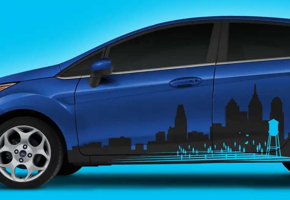 В этом году на автосалоне в Лос-Анджелесе Ford показал несколько уникальных версий модели Fiesta, одна из которых была почти полностью стоковой за исключением черных наклеек по бокам. Как оказалось, это был не единственный в своем роде экземпляр, а часть новой программы Ford, которая позволит покупателям украсить свои машины аналогичным образом.