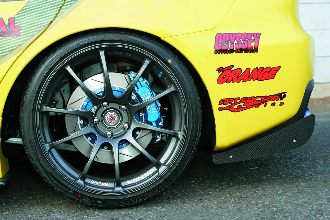 Комси-комсаВсем понятно: чтобы выделиться среди конкурентов, необходимо поработать над внешностью, тем более что на выставочном стенде мощность не померить… Но, глядя на список доработок, понимаешь, что и тут «джановцы» слегка нахалтурили, если можно так выразиться о таком ателье. Никакого обвеса, только карбоновые рассекатели под порогами и бамперами да немного измененная форма заднего диффузора. Ну не тырить же в самом деле у «Вариса» их – пожалуй, единственный существующий на сегодняшний день на рынке вариант обвеса на Evo X! Чтобы исправлять ситуацию, машину разукрасили в боевые цвета команды. Тебе отлично должен быть знаком этот солнечный колор по Stream-Z Даиджиро Инады, по другой, уже полноприводной «Фашке» китайского олигарха, тем более что об этих машинах мы писали. Финальными аккордами во внешности стали карбоновое антикрыло на багажнике от Sard и 19-дюймовые диски Yokohama Advan Racing RZ. Как ни крути, но даже наш критический и предвзятый тюнерский взгляд говорит, что смотрится результат внушительно, да и, положа руку на сердце, для Time Attack большего и не надо…