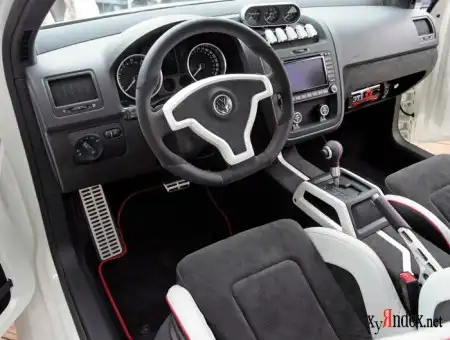 Секрет мастерства прост! За «рыбу» был взят обычный кузов обычного «гольфа», который в процессе долгой и упорной работы приобрёл экстремальный боди-кит с мощными воздухозаборниками, спойлерами, порогами и расширенными колёсными арками. Сердечком GTI W12 является 650-сильный би-турбо W12-агрегат с максимальным крутящим моментом в 750 Нм, который был интегрирован с среднюю часть кара, что соответственно, из-за требуемого места, позволяет разместить в салоне всего двум «гонщикам» - водителю и его попутчику. В области силовой передачи, GTI W12 стал обладателем шести ступенчатой коробки автомат, которая передаёт всю мощь на задний привод, оборудованного в свою очередь блокировочным дифференциалом. В целом, 650 «коней» и 750 Нм максимального момента, плюс модифицированная автоматика, позволяют «гольфу» делать «сотку» всего за 3,7 секунды и развивать «максималку» аж до 325 км/ч. Чтобы GTI W12 держался на трассе как «вкопанный», ему была «пересажено» жёсткое винтовое шасси, пакет стабилизаторов и специальные распорки. Результат – на 70 мм заниженный клиренс, который «утопил» в расширенных колёсных арках стильные 19-дюймовые GTI-диски с шинами размерности 235 на передней оси и шинами 295 на задней.