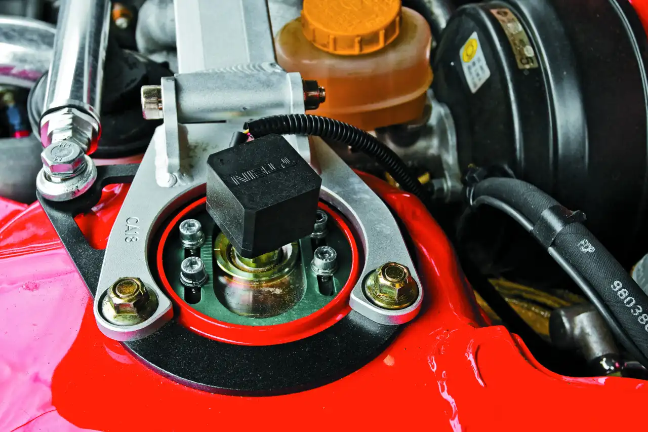 Первый элемент – подвеска. Она должна быть максимально жесткой, чтобы предотвратить даже малейшие крены и передавать реакцию на поворот руля мгновенно. Кинематика дрифтовой подвески схожа с кинематикой подвесок кольцевых автомобилей, и "рулежка" – один из важнейших элементов управления автомобилем. Разница лишь в настройках. Для данного автомобиля первым ингредиентом явились койловеры Tein Flex. Понимающий человек скажет, что, мол, ни фига они не дрифтовые. Но есть оправдание – просто пришлось пойти на компромисс, так как трассы наших дрифтовых чемпионатов не обладают хорошим асфальтом, поэтому тот же Tein Super Drift ведет себя менее предсказуемо и стабильно. Ну и, естественно, заменили все рычаги подвески на полностью регулируемые, с креплением на стальных ШСах вместо стандартных резиновых сайлентблоков, и установили толстые стабилизаторы и распорки. Кстати, регулировку сжатия и отбоя можно проводить прямо из салона благодаря устройству EDFC.