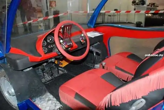 Это чудо дизайнерской мысли было представлено на «Мотошоу – Украина 2010» и является опытным образцом. Рама этого концепта выполнена из стальных труб, а кузов из пенопласта, покрытого стекловолокном, и не забудьте про наличие дверей Lambo-Style. «Автомобиль» укомплектован четырехтактным двигателем от мотоцикла «Днепр МТ-10», который позволяет разгоняться концепту до максимальной скорости в 95 км/ч при расходе топлива 6 литров на 100 километров пробега. По утверждению разработчика, если установить на двигатель импортный карбюратор, расход топлива снизится аж на 1.5 литра и составит 4.5 литра на 100 км. Начало серийного производства чудо-авто намечен на конец 2010 года, а цена в продаже составит всего 2000-2500$. А вы готовы потратить 2500$ на «ЭТО»??