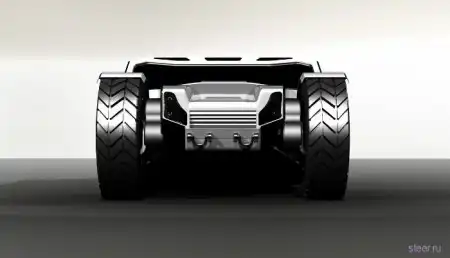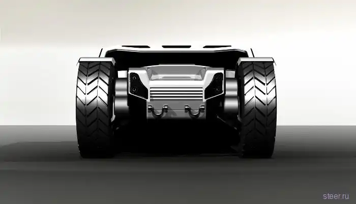 Для начала, это настоящий бигфут – штатными считаются 46-дюймовые колеса. Дорожный просвет при этом колеблется от 0 до 116 сантиметров. Первая в мире «гидро-пневматическая» подвеска способна поднимать по отдельности каждое колесо, перешагивая через препятствия (читай – другие автомобили). Более того, подвеска способна в реальном времени менять развал и кастер, обеспечивая лучшее прохождение поворота, или лучшие условия для преодоления бездорожья.