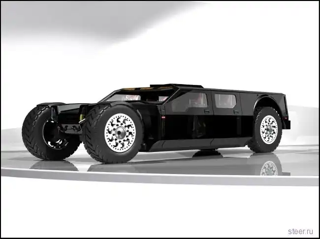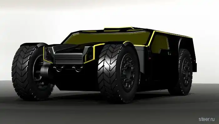 Кузов – первый в мире титановый монокок. Благодаря этому суперджип весит две тонны (Hummer H2 – 3500 кг). Карбон отвергнут конструкторами как материал, плохо сопротивляющийся ударным воздействиям (например, пулям и осколкам). Двигатель – дизельный V8 базовой мощностью 360 л.с., с многочисленными вариантами форсировки.