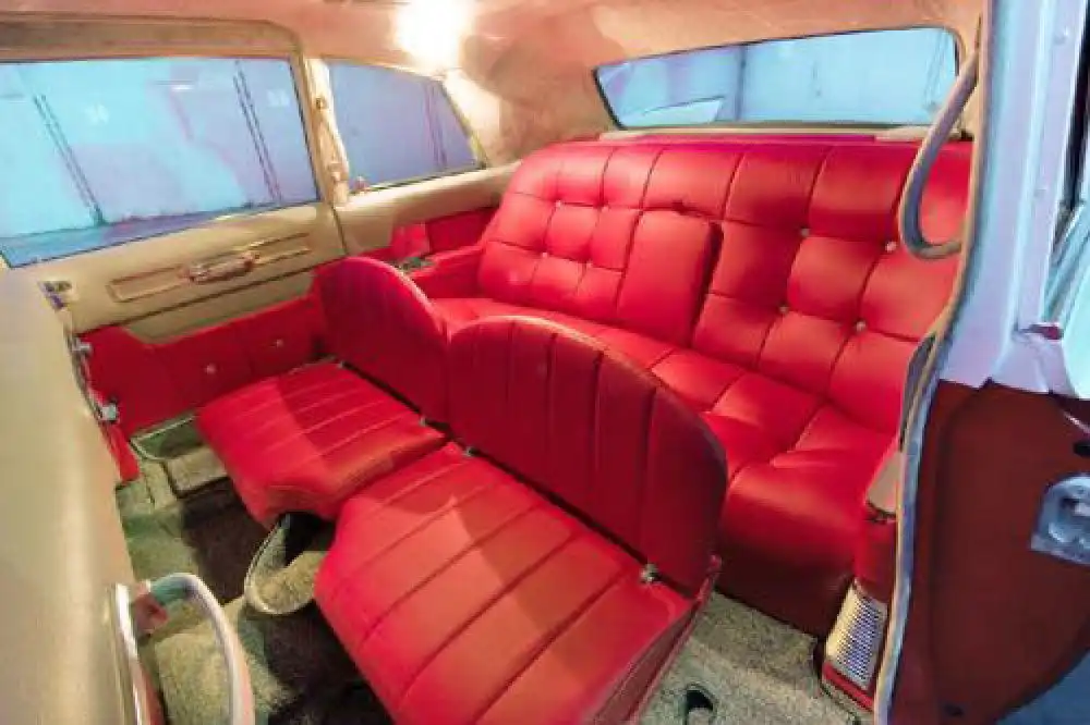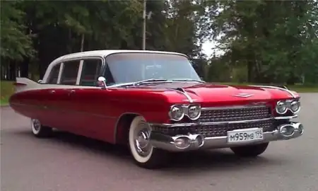 Знаменитый 59 Cadillac Fleetwood Imperial Limo, заводского производства лимузин. Всего было выпущено 700 автомобилей. Автомобиль имеет места для 6-ти человек, кожаный салон красного цвета, двигатель объемом 6,6 литра и автоматическую трансмисиию.